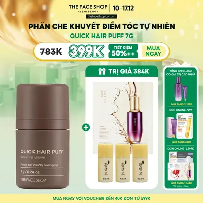 Phấn che khuyết điểm tóc THE FACE SHOP Quick Hair Puff là một sản phẩm trang điểm độc đáo giúp che điểm tóc thưa và lộ da đầu một cách hiệu quả và tự nhiên. Với công thức dạng phấn mịn, sản phẩm này giúp tạo cảm giác tóc dày hơn và che điểm các vùng tóc thưa một cách tự nhiên, không gây cảm giác nặng nề hay nhìn giả. Với công thức đặc biệt bám sát và bền màu, sản phẩm giúp tạo cảm giác tóc dày hơn và che điểm các vùng tóc thưa, tóc hói một cách tự nhiên.