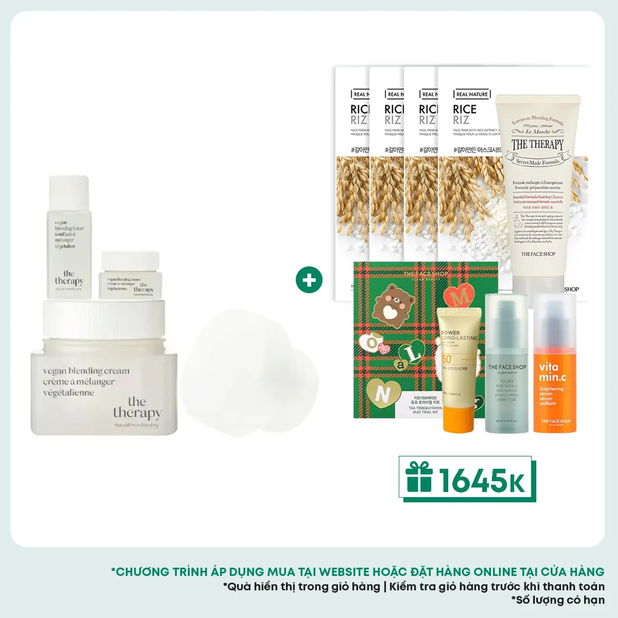 Bộ Dưỡng Da Thuần Chay THE FACE SHOP Cải Thiện Nếp Nhăn Da The Therapy Vegan Blending Cream Special Set 4pcs