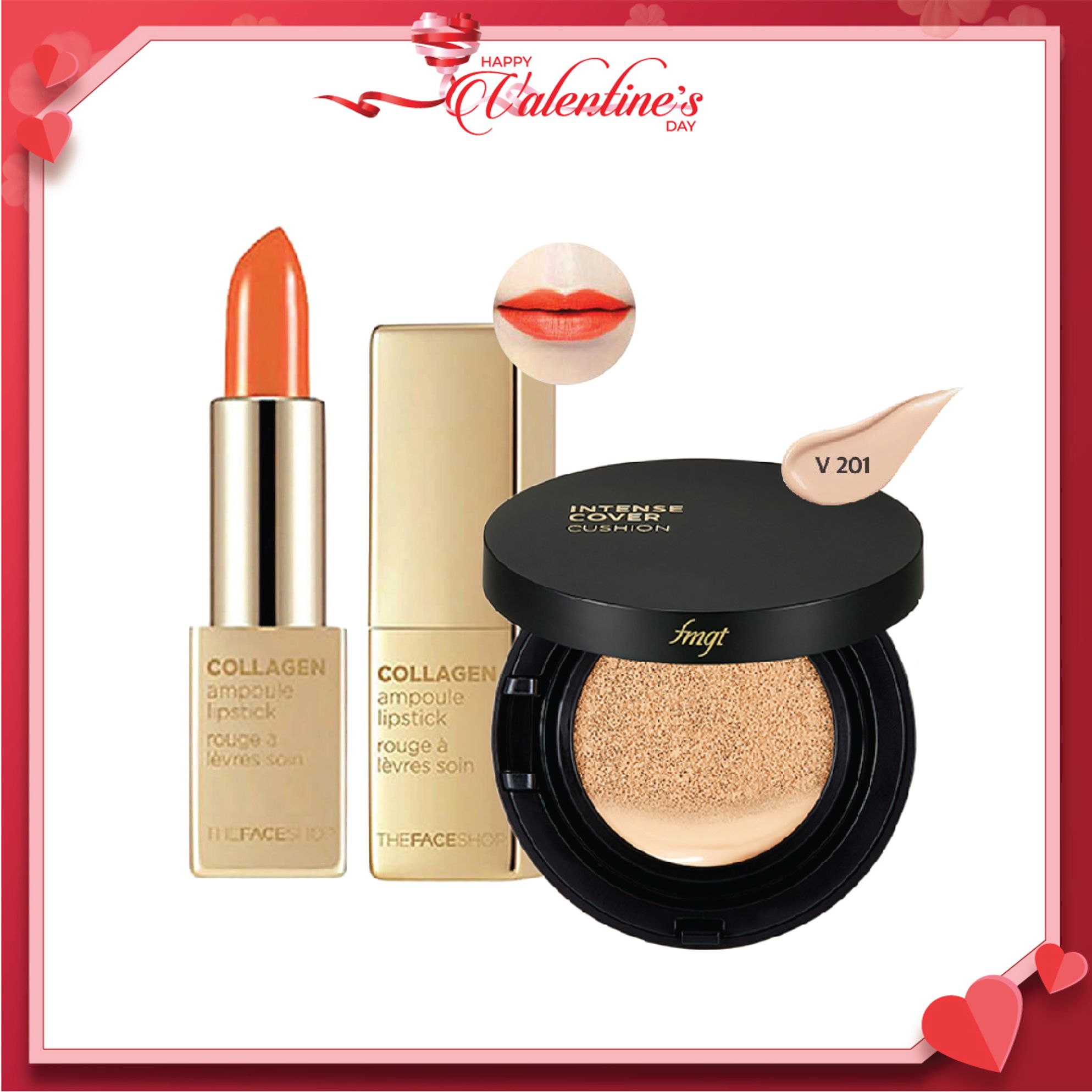 Bộ Sản Phẩm Trang Điểm Hoàn Hảo Phấn Nước Che Phủ Khuyết Điểm ( Phấn Nước + Son Collagen Đỏ Cam )