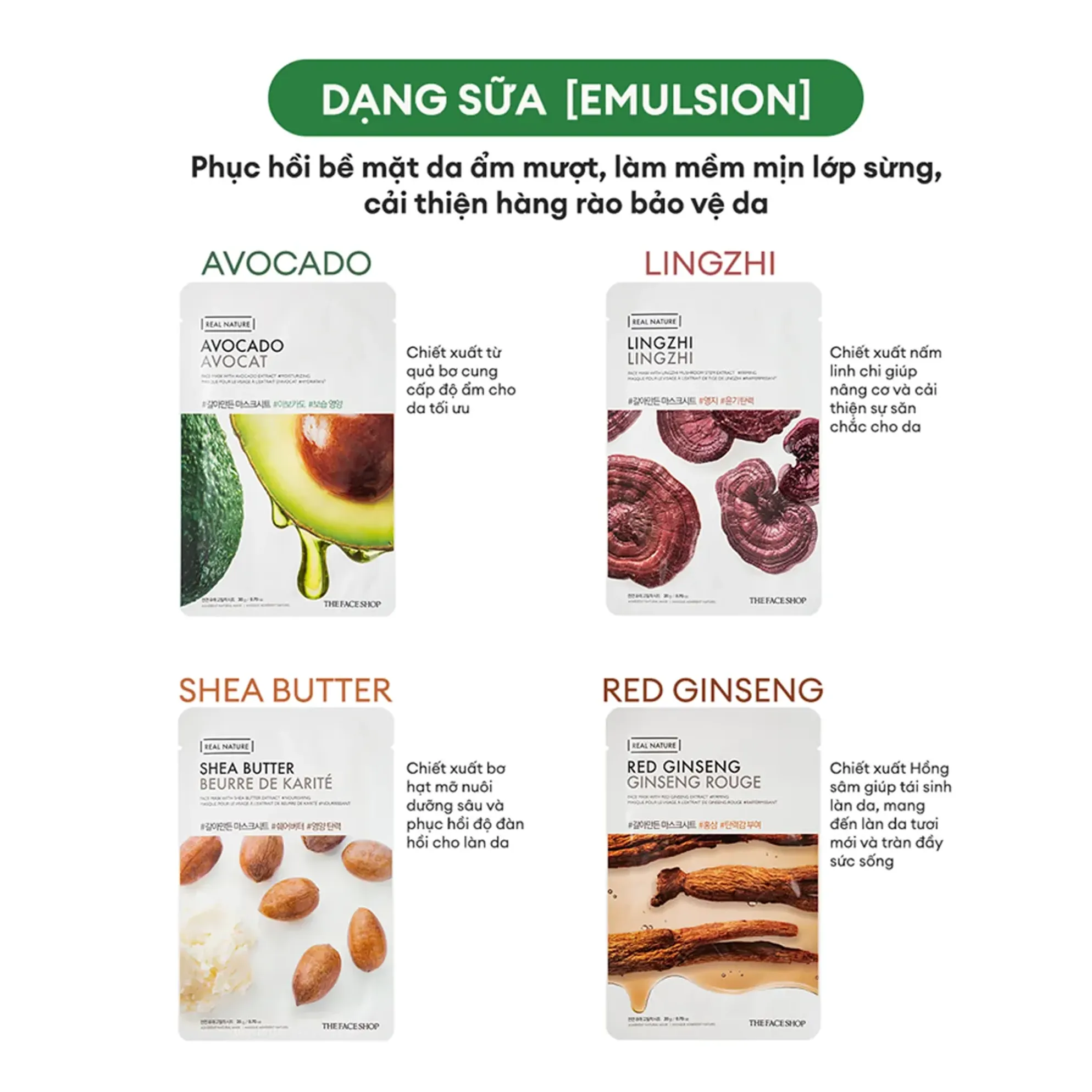 Combo 25 Mặt Nạ THE FACE SHOP Dưỡng Ẩm Dành Cho Mọi Loại Da Mặt Real Nature 20g (mix nhiều loại) + 2 mặt nạ mắt chanh 6ml