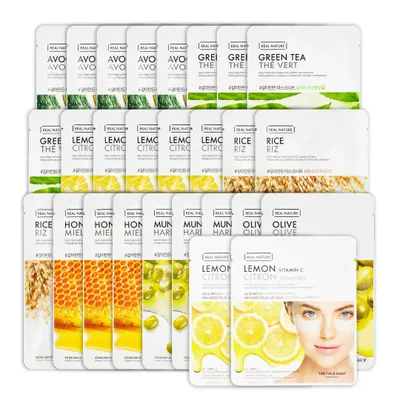 thefaceshopCombo 25 Mặt Nạ THE FACE SHOP Dưỡng Ẩm Cho Da Mặt Real Nature 20g (mix nhiều loại) + 2 mặt nạ mắt chanh 6ml