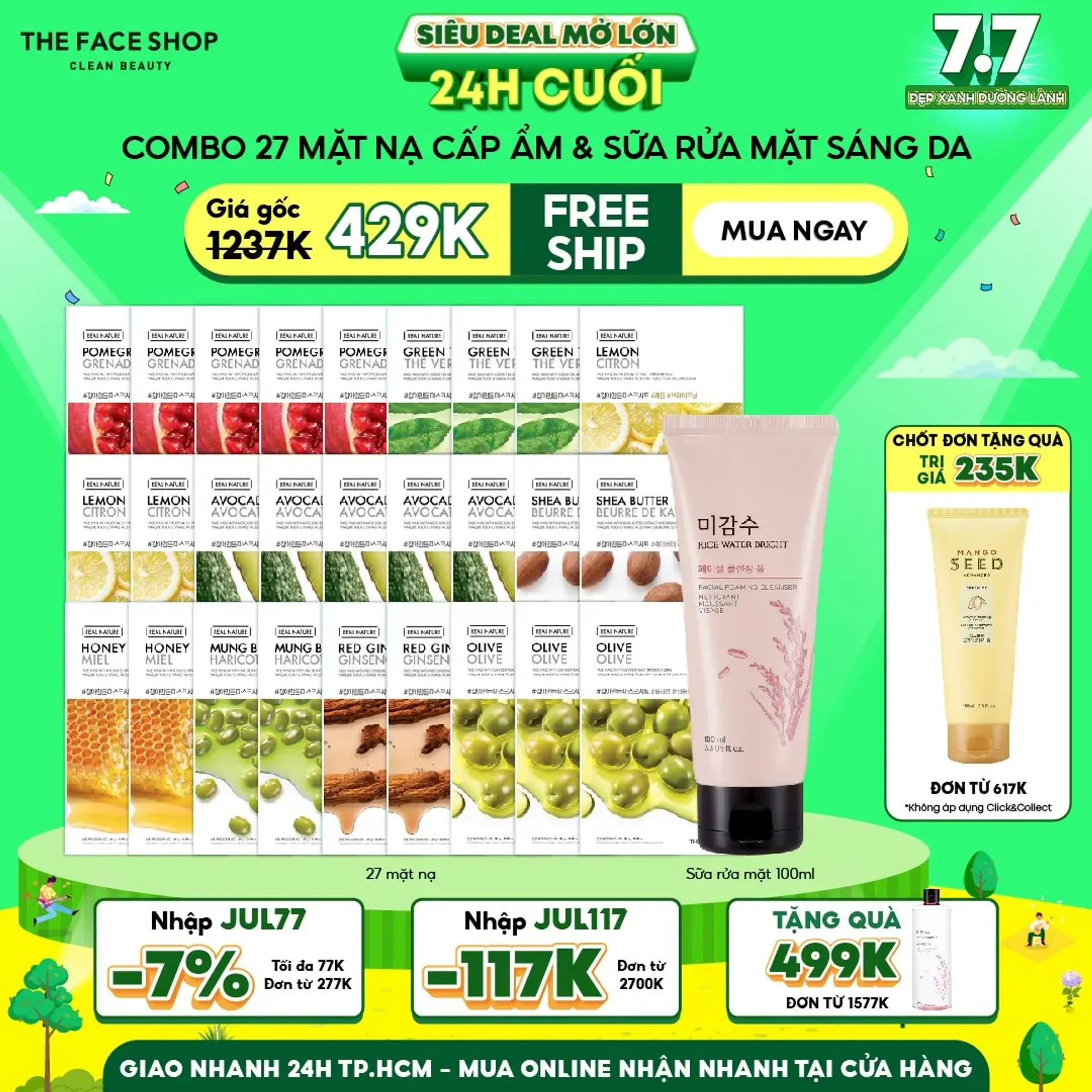 Combo 27 Phục Hồi Năng Lượng Da Mỗi Ngày Real Nature 20g (mix nhiều loại) & sữa rửa mặt gạo 100ml