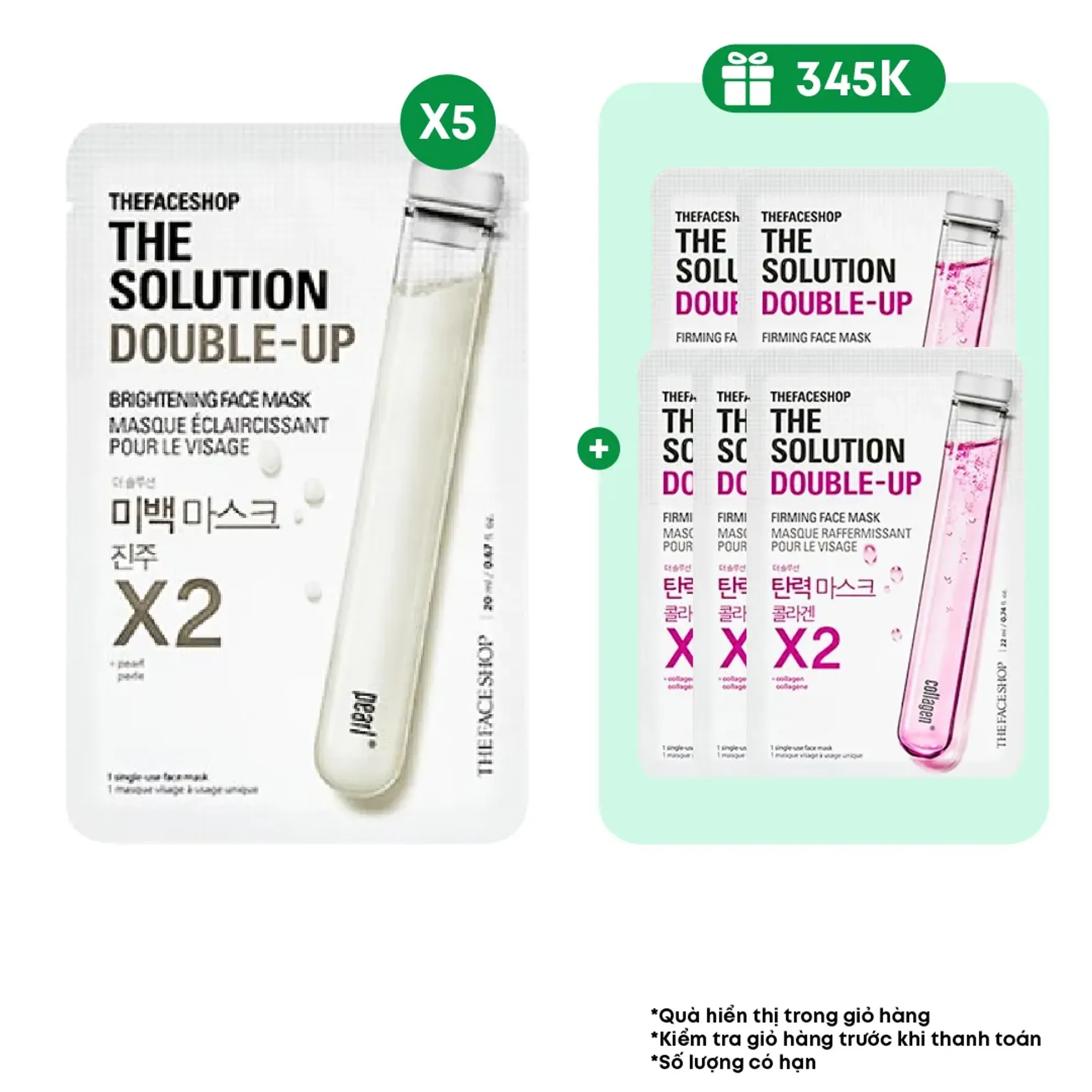 Combo 5 Mặt Nạ Tăng Cường Làm Sáng Da THE FACE SHOP The Solution Double-Up Brightening (Gz) 20ml