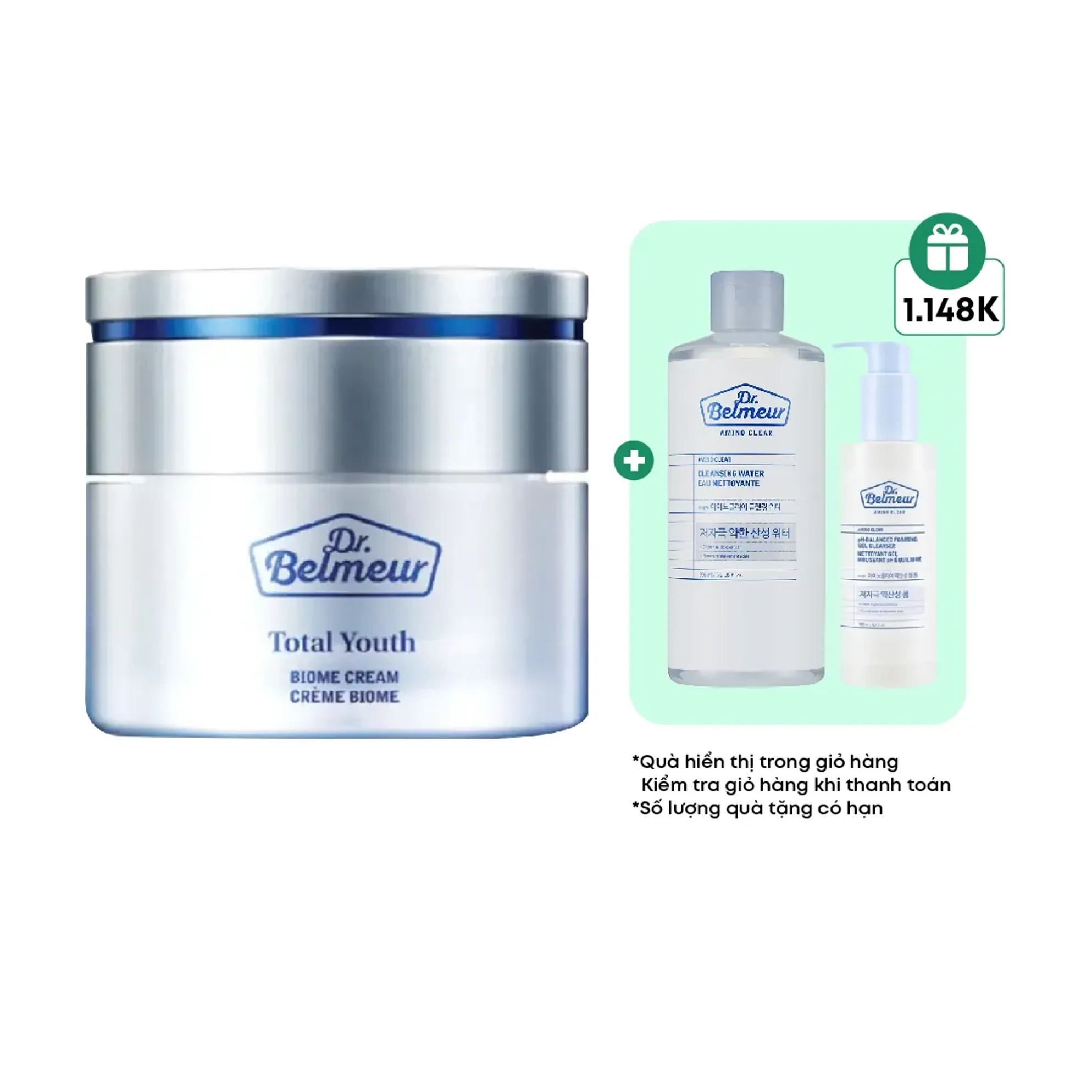 Combo Dịu Nhẹ Dr.Belmeur (kem dưỡng Total Youth 50ml, sữa rửa mặt 190ml, nước tẩy trang Amino 295ml)