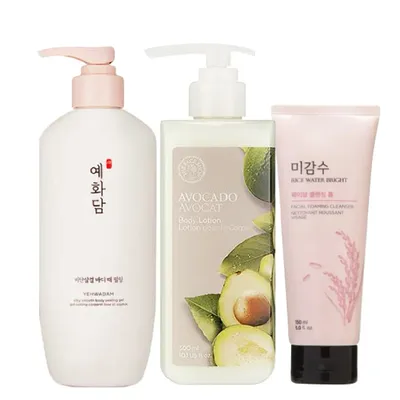 Combo Tẩy Da Chết & Dưỡng Ẩm Body (1 Tẩy Da Chết Yehwadam 300Ml + 1 Dưỡng Thể Avocado 300Ml + Sữa Rửa Mặt 150Ml)