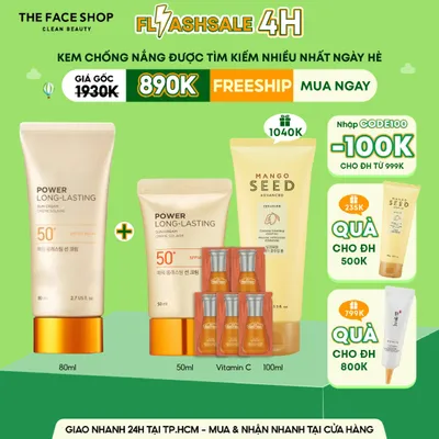 Combo THE FACE SHOP Bảo Vệ Da Toàn Diện (2 kem chống nắng 80ml&50ml, sữa rửa mặt 100ml, 5 tinh chất 1.2ml)