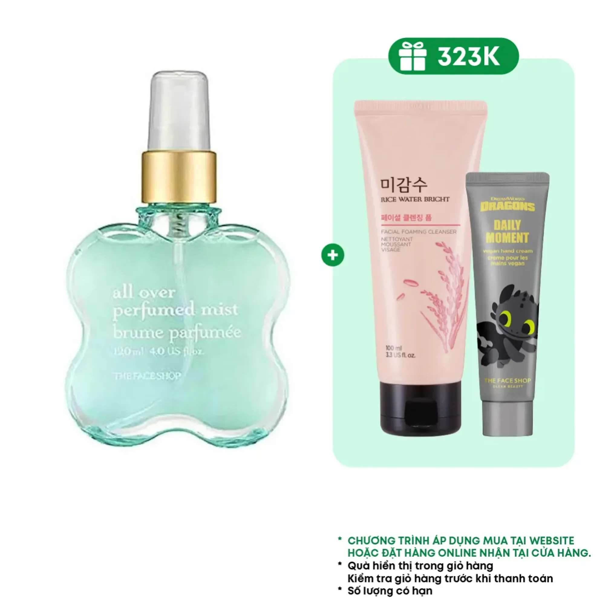 Combo Xịt Dưỡng Thể Hương Nước Hoa THE FACE SHOP All Over 120ml #02 + sữa rửa mặt 100ml + kem dưỡng tay 30ml mùi hương 01