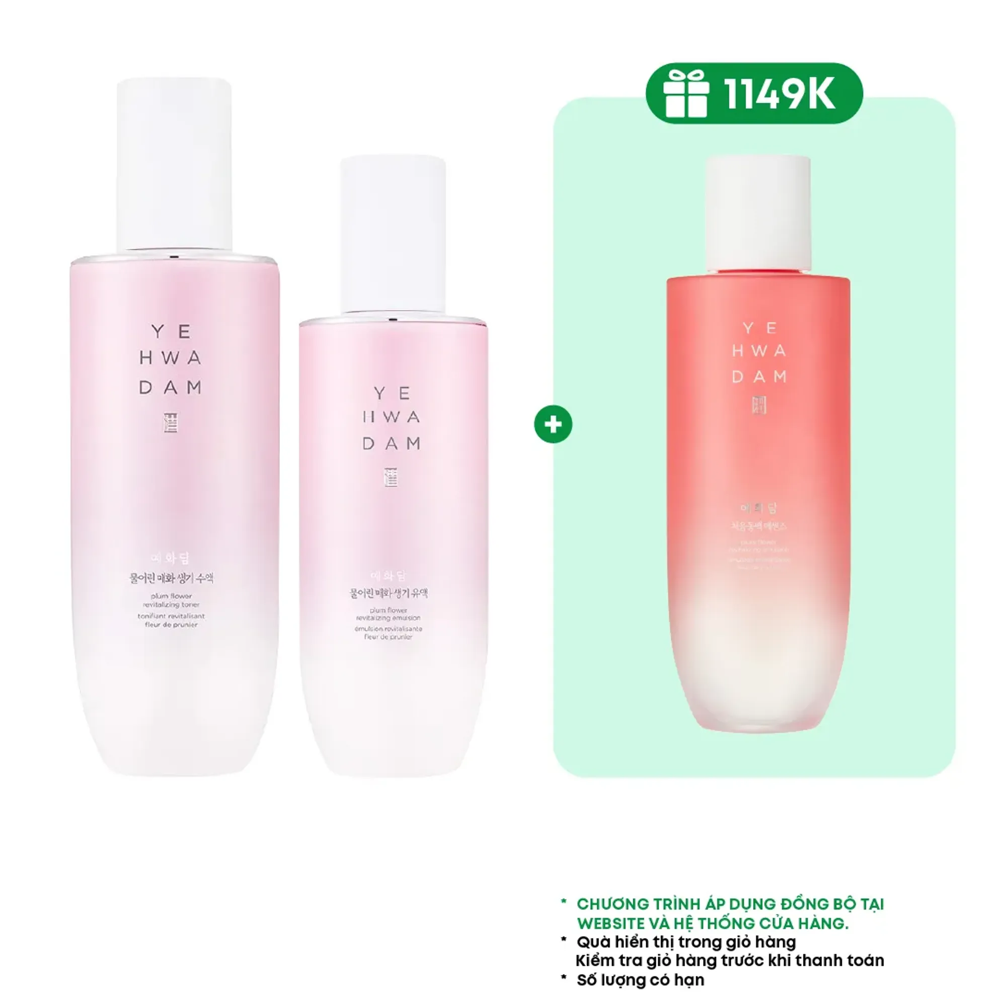 Combo Yehwadam Phục Hồi Sinh Khí Da Plum Flower Revitalizing (toner 160ml + sữa dưỡng 140ml)