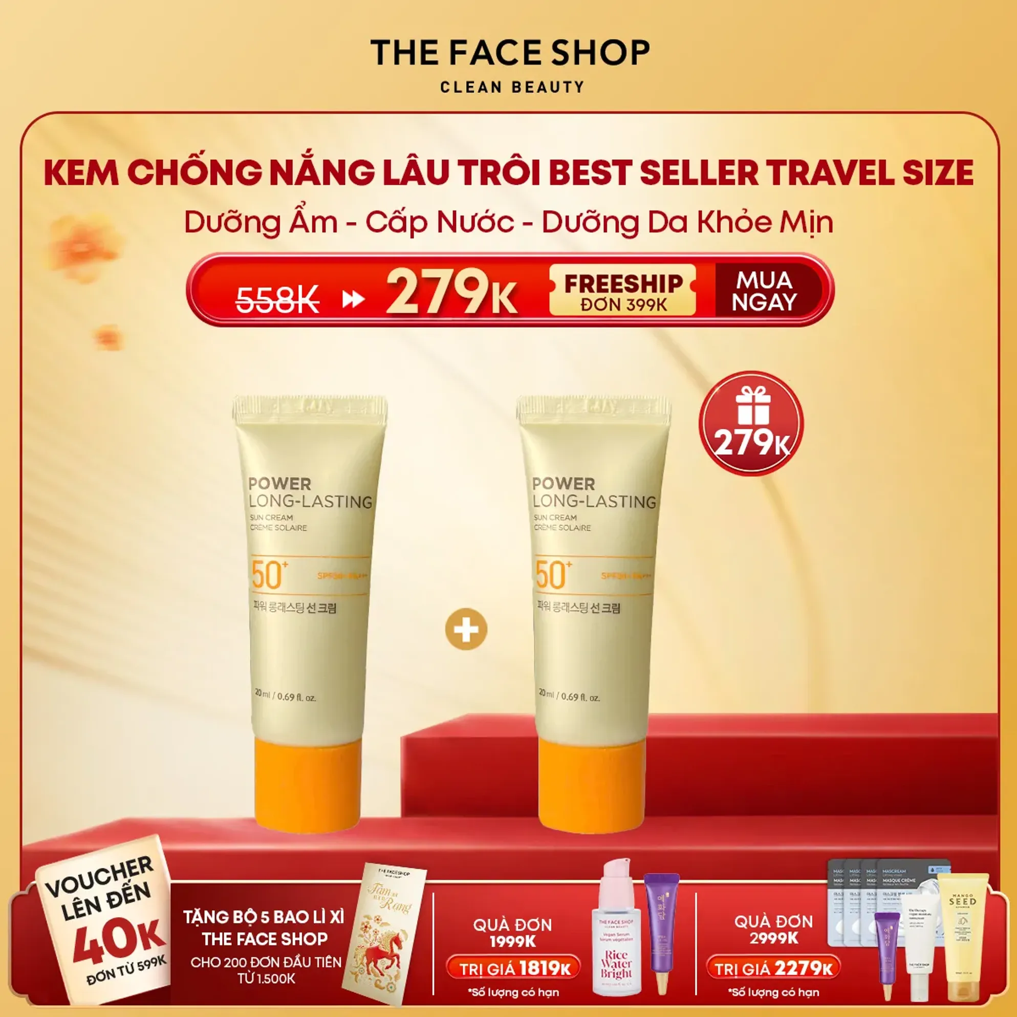 Natural sun ECO power long-lasting sun cream SPF50+ PA+++ là kem chống nắng vật lý lai hóa học đa năng được yêu thích nhất tại The Face Shop. Sản phẩm vừa chống nắng bảo vệ da tối đa nhờ chỉ số SPF50+, vừa có thể sử dụng làm kem lót trang điểm hoàn hảo.Hơn thế, kem chống nắng natural sun có khả năng kháng nước, dầu nhờn. Ngăn được cả 2 tia UVA và UVB, giảm thiểu tình trạng sạm da. Kem có kết cấu nhẹ, màu da tự nhiên, thoa lên da thẩm thấu nhanh không gây bết dính. Đồng thời giúp điều chỉnh sắc màu da mịn tự nhiên.