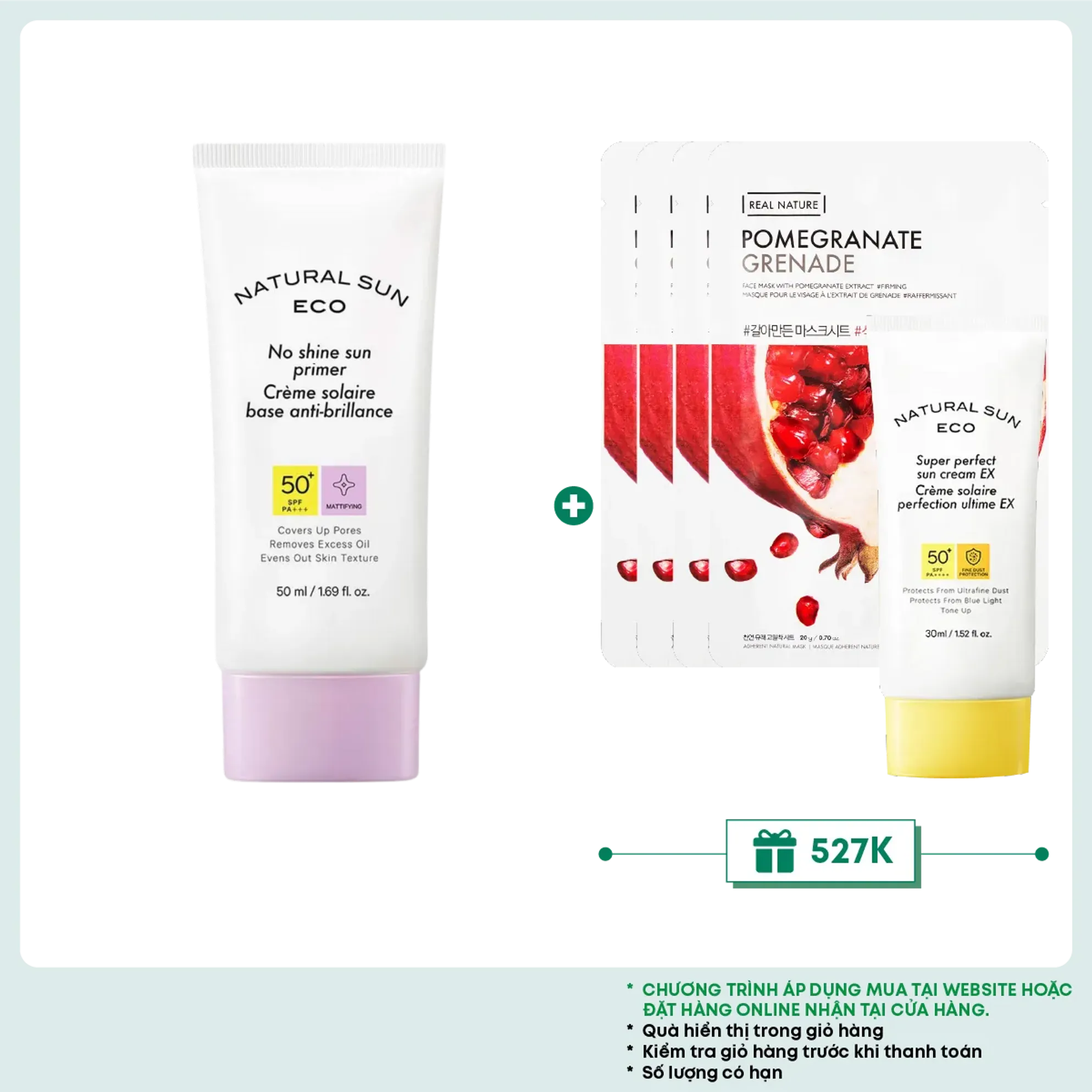 Dòng chống nắng: Kem chống nắng vật lý lai hóa học Kem chống nắng THEFACESHOP NATURAL SUN ECO NO SHINE SUN PRIMER là sản phẩm đa chức năng, sử dụng các bộ lọc hóa học và vật lý để cung cấp khả năng chống nắng SPF 50+ PA+++, che phủ lỗ chân lông to và kết cấu da không đều màu để chuẩn bị cho da trang điểm hoàn hảo.