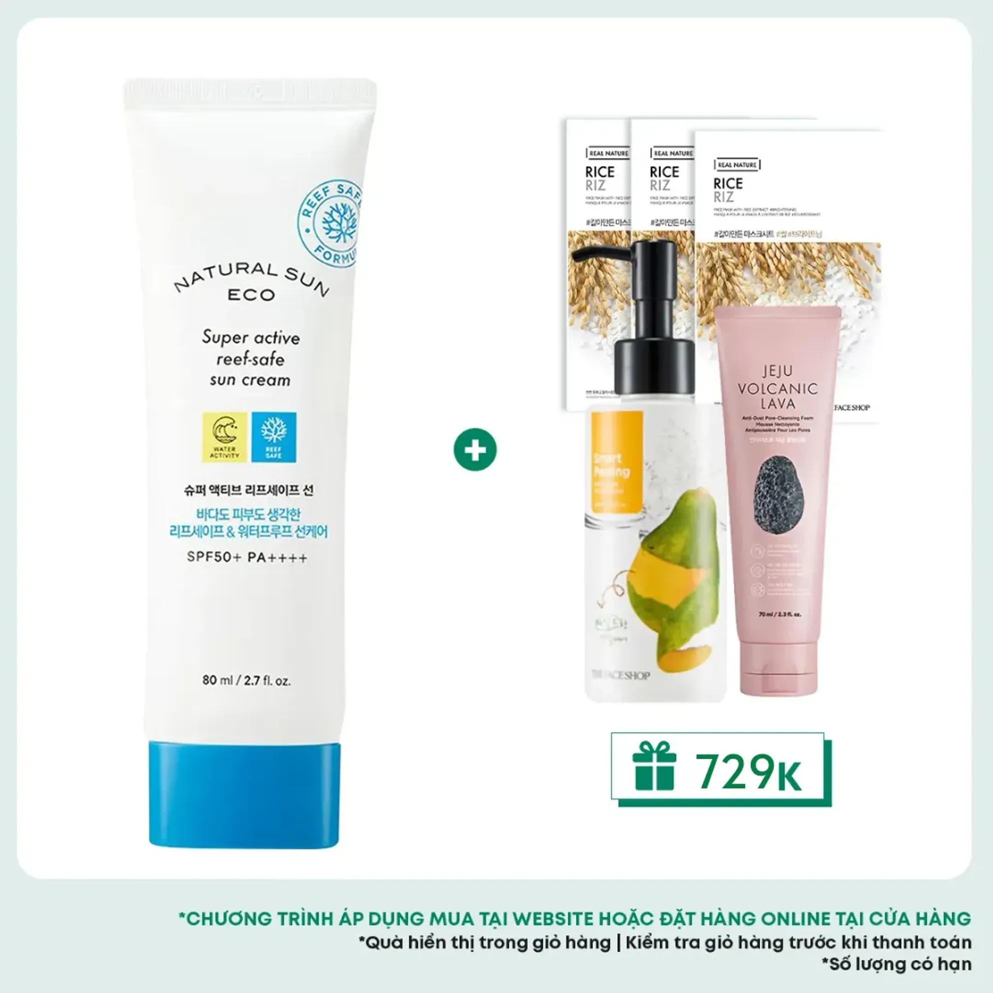 Kem Chống Nắng Không Trôi Bảo Vệ Da An Toàn Rạn San Hô THE FACE SHOP Natural Sun Eco Super Active Reef-Safe Sun Cream SPF50+PA++++ 80ml