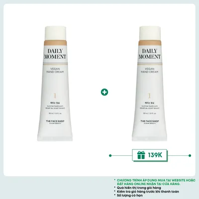 Bộ Dưỡng Da Tay Daily Moment Vegan Hand Cream được chiết xuất từ các thành phần thiên nhiên an toàn, lành tính đối với cơ thể con người. Kem dưỡng có công dụng bổ sung ẩm, làm mềm da tay, giảm thiểu tình trạng khô sần, bong tróc và nứt nẻ da tay vào mùa khô.