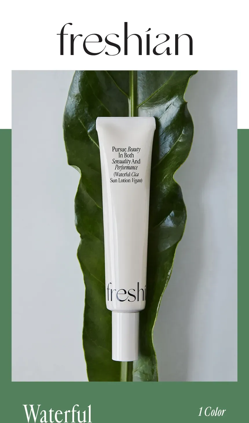 Kem lót Freshian Waterful Cica Sun Lotion Vegan là sản phẩm kem lót đa năng chống nắng tươi mát chứa tinh chất cica, có chỉ số chống nắng cao, bảo vệ da tránh khỏi các tia cực tím, UVA/UVB gây hại, làm dịu các vết cháy nắng, hạ nhiệt độ trên da hiệu quả. Chứa chiết xuất rau má (10 ppm) là thành phần cica giúp chăm sóc da, mang lại tác dụng làm dịu da tuyệt vời.