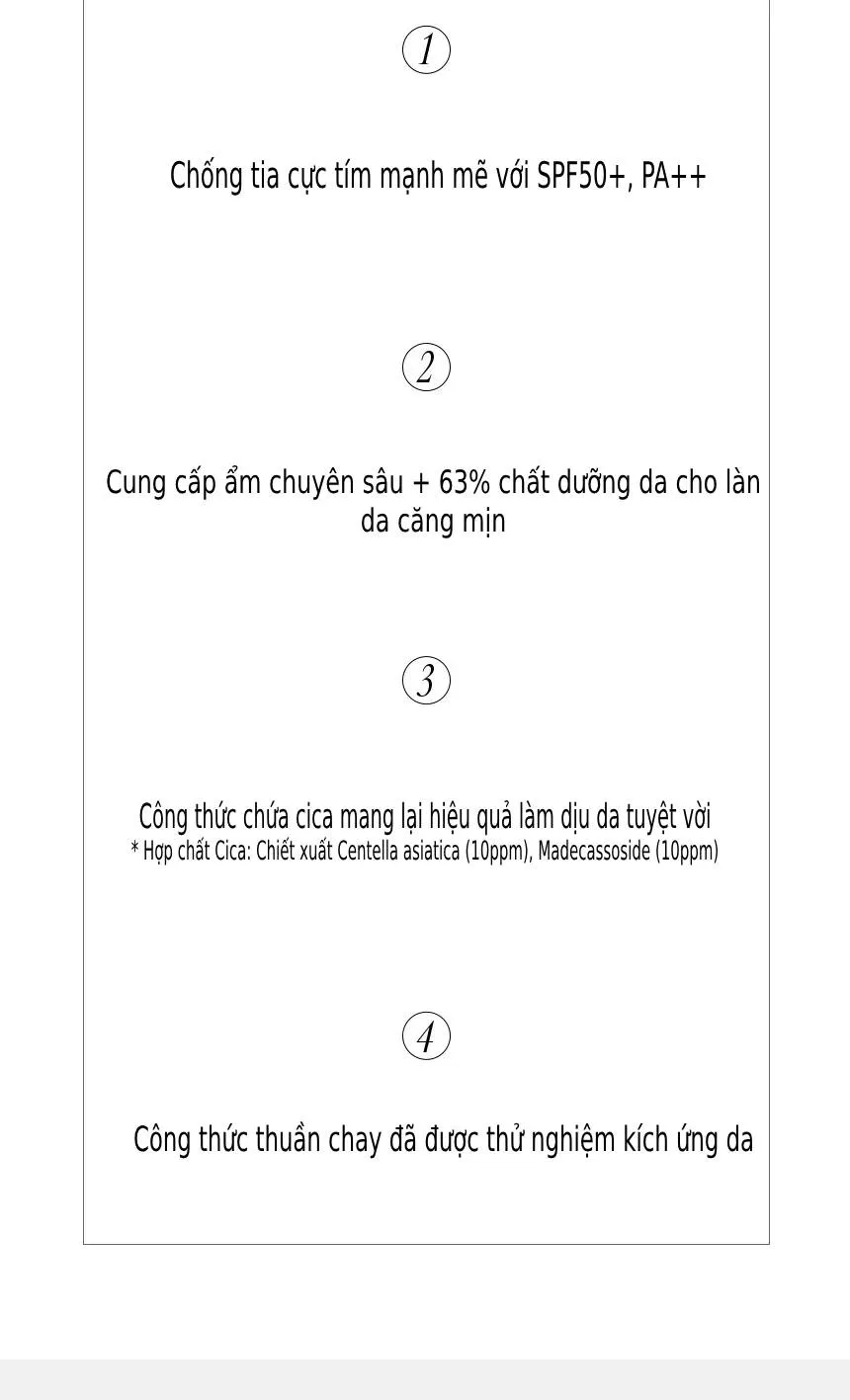 - Công thức thuần chay, không chứa nguồn gốc thực vật, không gây kích ứng cho da.