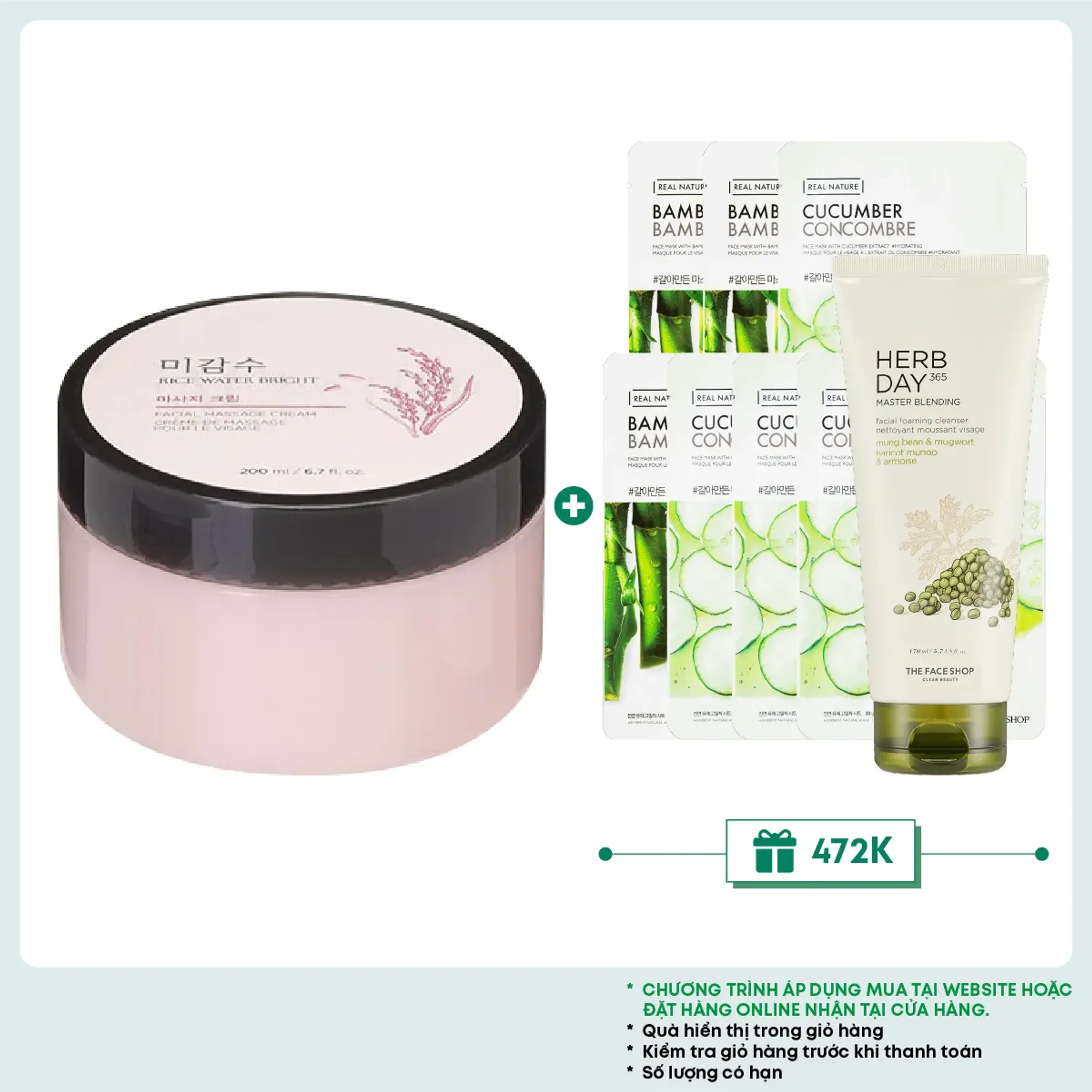 Kem Massage THE FACE SHOP Làm Sáng Da Rice Water Bright Facial Massage Cream 200ml