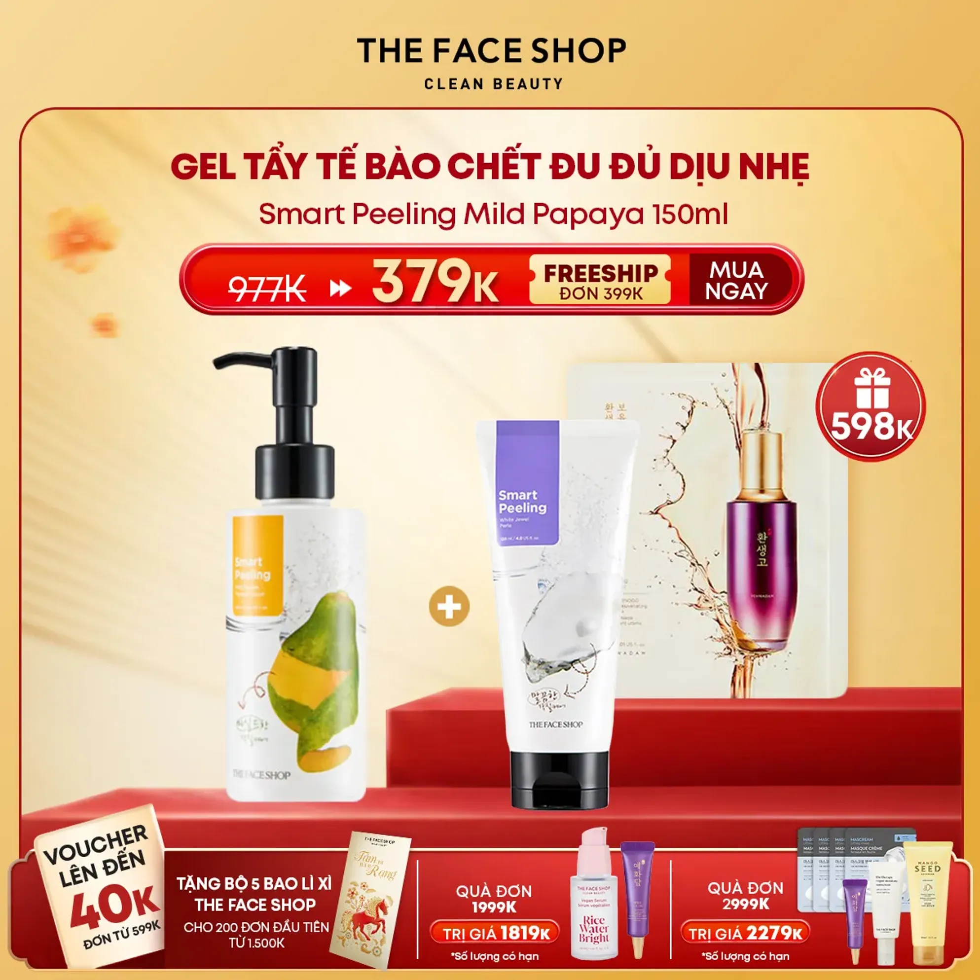Gel Tẩy Tế Bào Ch.ế.t THE FACE SHOP làm sạch da đu đủ Smart Peeling Mild Papaya dịu nhẹ cho mọi loại da 150ml