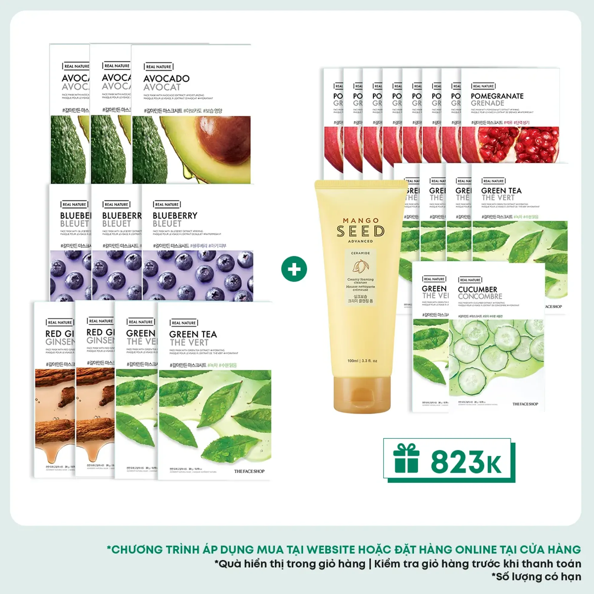 [Mua 10 tặng 14] Combo Mặt Nạ Mix Dưỡng Sáng, Ẩm Mịn Da THE FACE SHOP Real Nature 20g