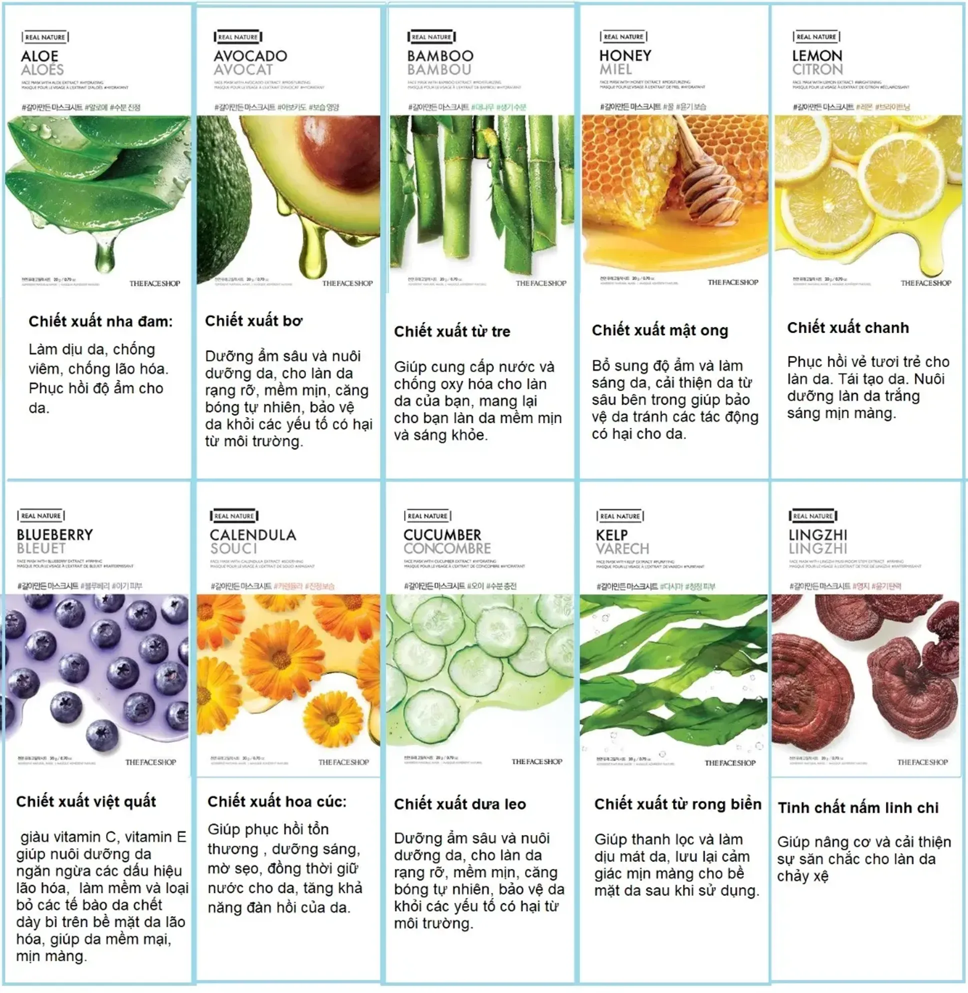 [Mua 10 tặng 16] Mặt Nạ Giấy THE FACE SHOP Real Nature 20g (hồng sâm, chanh, trà xanh, bơ, mặt nạ mắt)