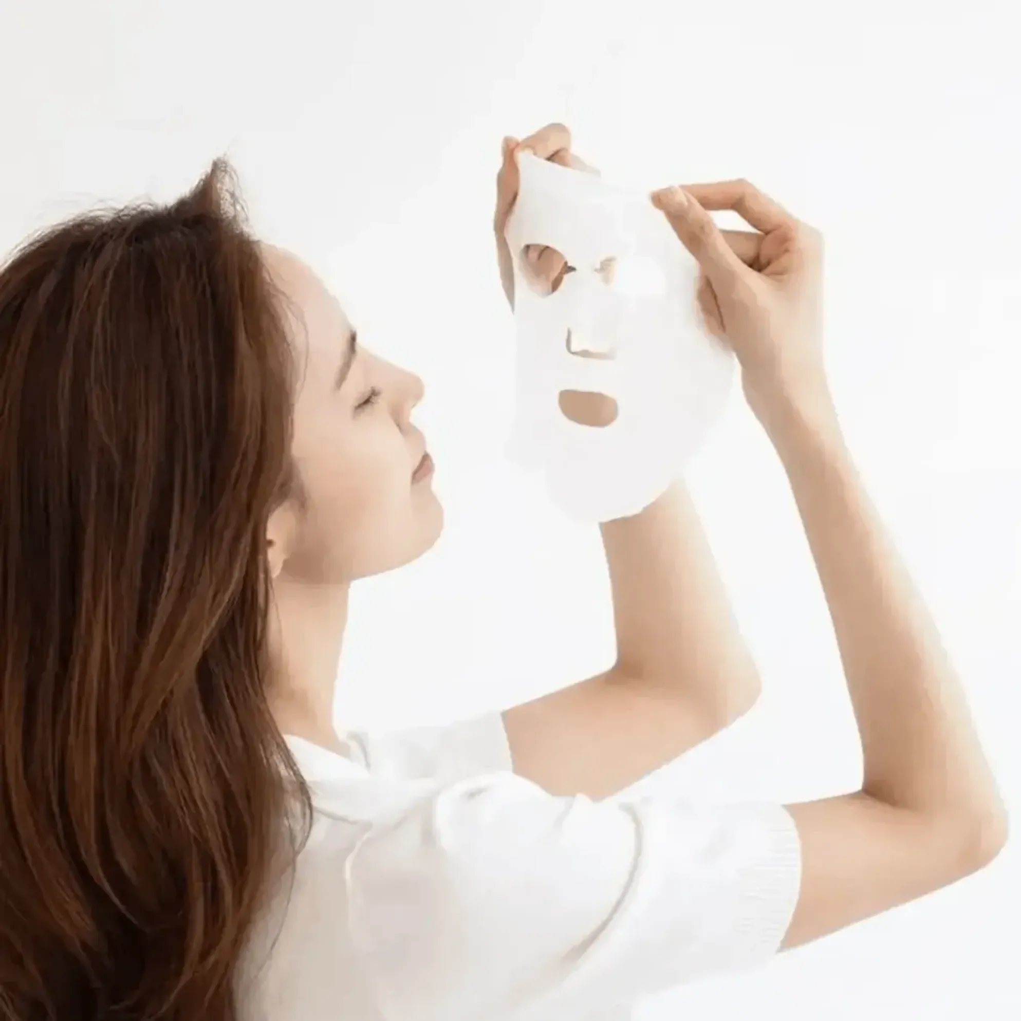 - Lấy miếng mặt nạ ra khỏi bao, trải đều và vuốt cho mặt nạ khít với mặt.