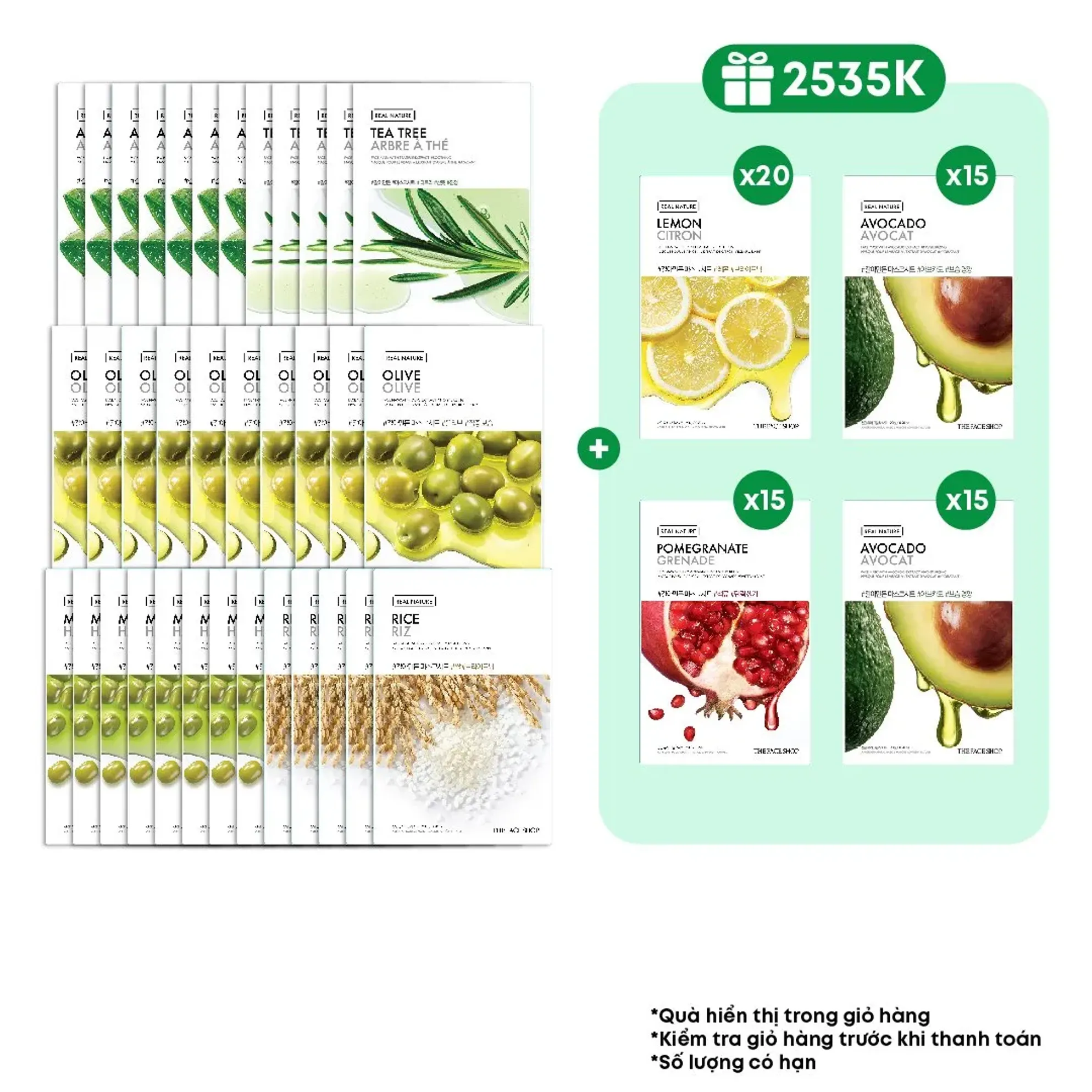 **Combo bao gồm 100 mặt nạ cấp ẩm THE FACE SHOP Real Nature 20g (mix nhiều loại), sẽ giao ngẫu nhiên khi hết hàng