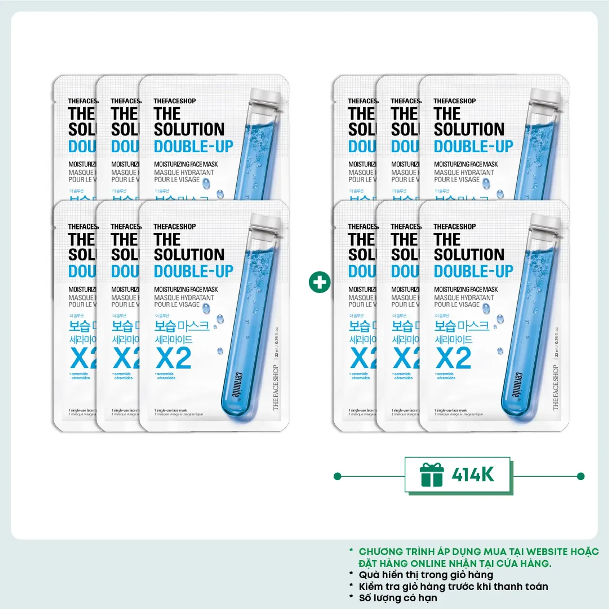 [Mua 6 tặng 6] Mặt Nạ Cấp Ẩm Làm Dịu Da THE FACE SHOP The Solution Double-Up Face Mask 22ml