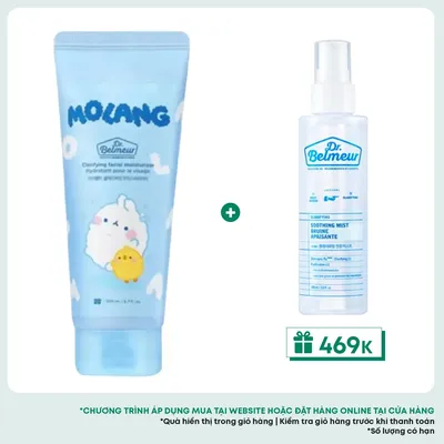Kem dưỡng DR.BELMEUR CLARIFYING MOISTURIZER phiên bản đặc biệt Molang dịu nhẹ giúp bổ sung độ ẩm, cân bằng dầu và nước trên da. Công thức Skin-sync Rx độc quyền mang đến sự tương thích nhanh chóng của sản phẩm với làn da nhờ phương pháp lựa chọn những thành phần thực vật có cấu trúc và chức năng tương đồng với làn da.