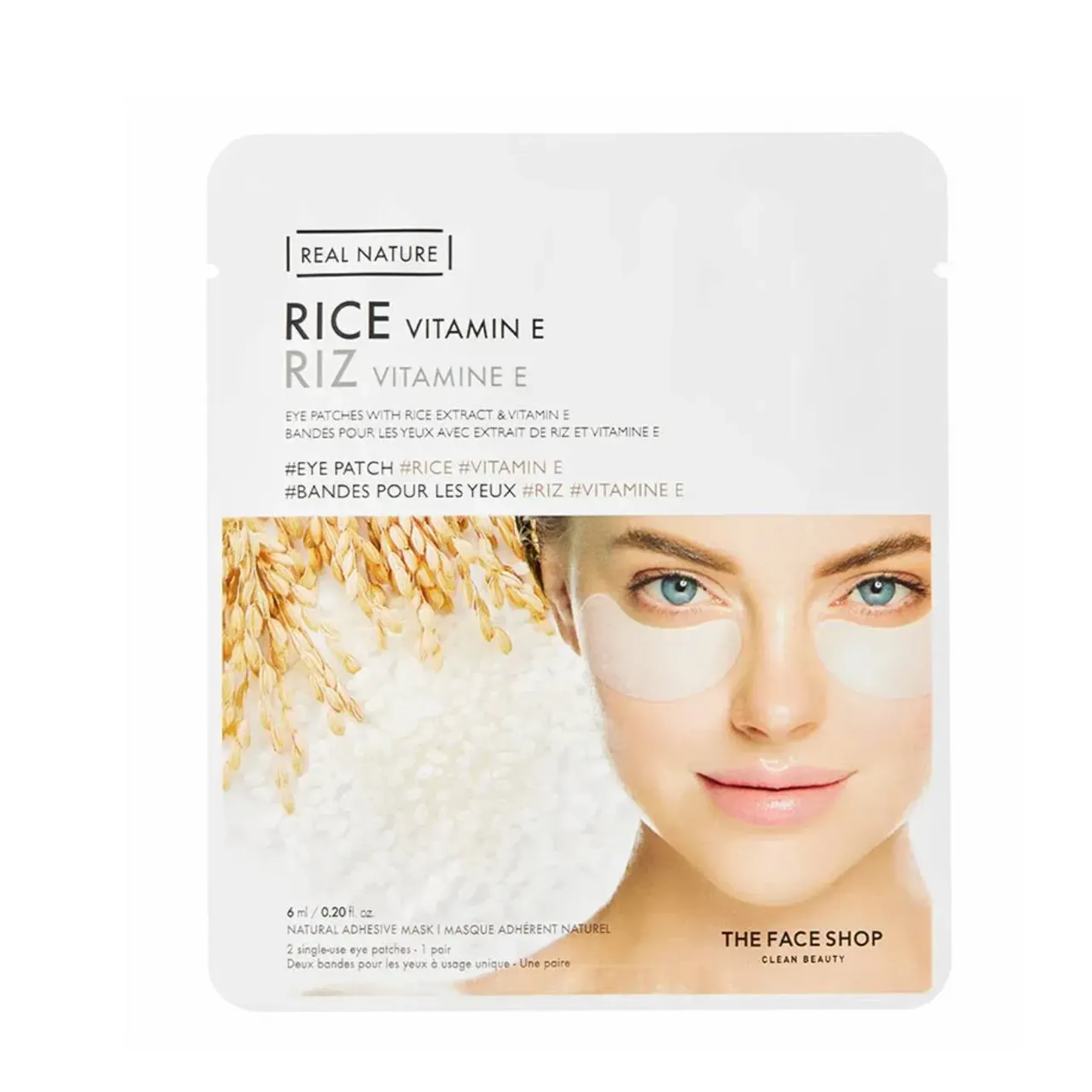 2 Mặt Nạ Mắt THE FACE SHOP Chiết Xuất Gạo Real Nature Rice Vitamin E Eye Patches 6ml