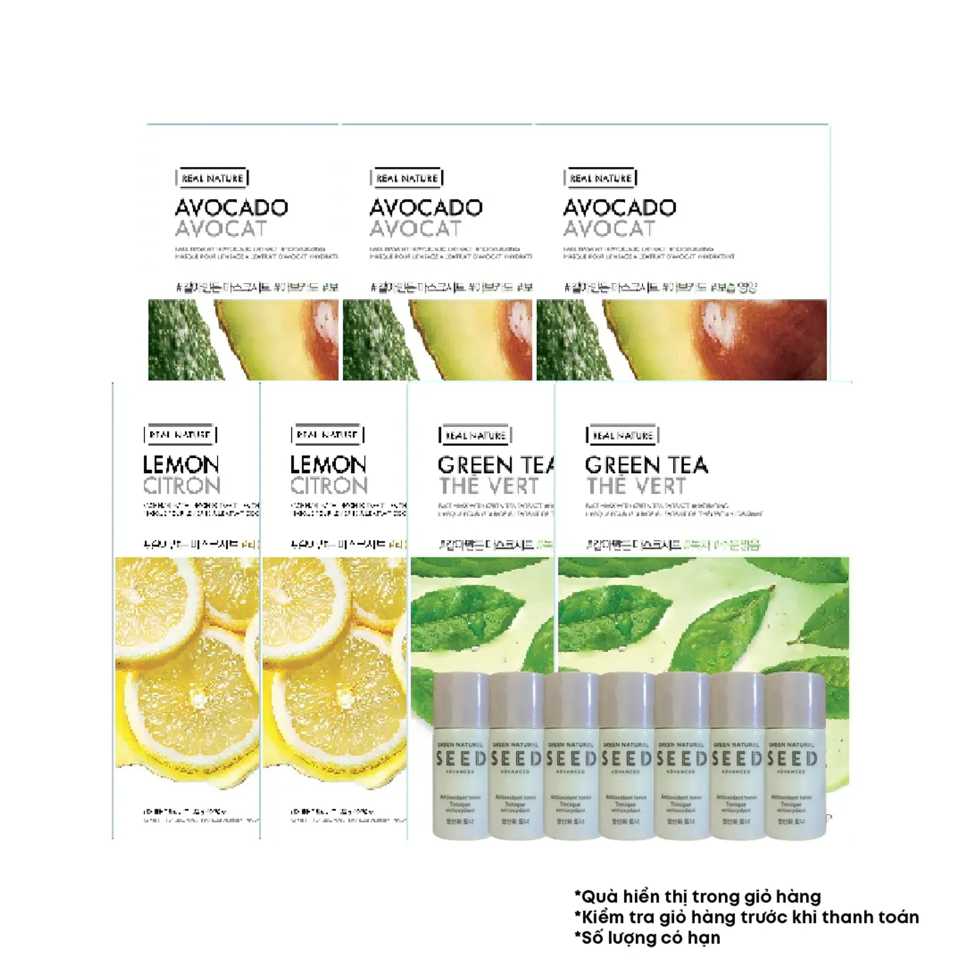 (Quà tặng) 7 Mặt Nạ Giấy Phục Hồi Ẩm THE FACE SHOP Real Nature 20g (mix nhiều loại) & 7 toner 5ml