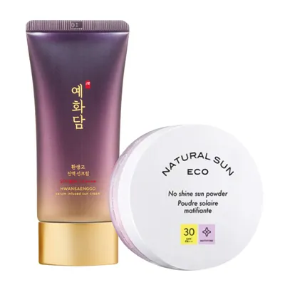 (Quà tặng) Kem Chống Nắng Yehwadam Ngừa Lão Hóa Hwansaenggo 50ml & Phấn Phủ Natural Sun Eco No Shine Sun 13g