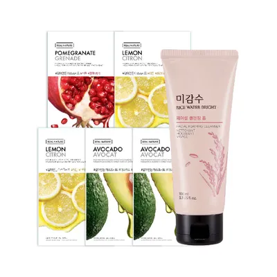 (Quà tặng) Sữa Rửa Mặt THE FACE SHOP Rice 100m & 5 mặt nạ Real Nature