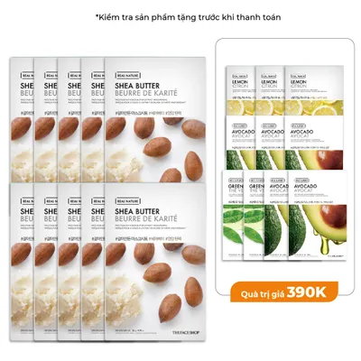 Set 10 Mặt Nạ Phục Hồi Và Cung Cấp Độ Ẩm THE FACE SHOP Real Nature Shea Butter Face Mask 20g (GZ)