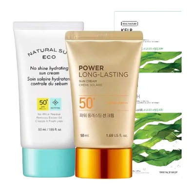 Set 2 Kem Chống Nắng Lâu Trôi THE FACE SHOP Natural Sun Eco & 2 Mặt Nạ Real Nature Kelp