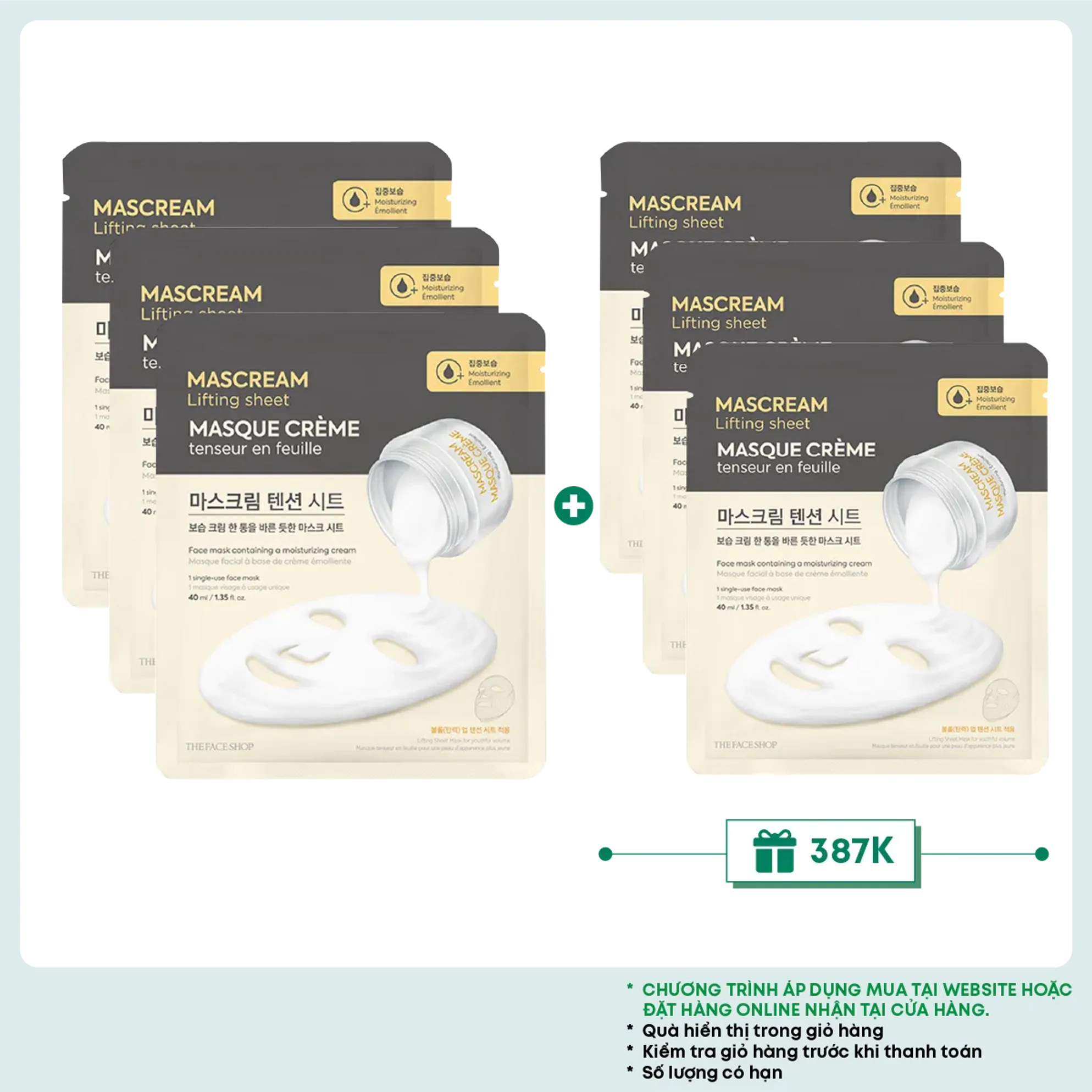 [Mua 3 tặng 3] Mặt Nạ Cấp Ẩm Chuyên Sâu THE FACE SHOP Deeply Moisturizing Mascream Lifting Sheet Mask 40ml