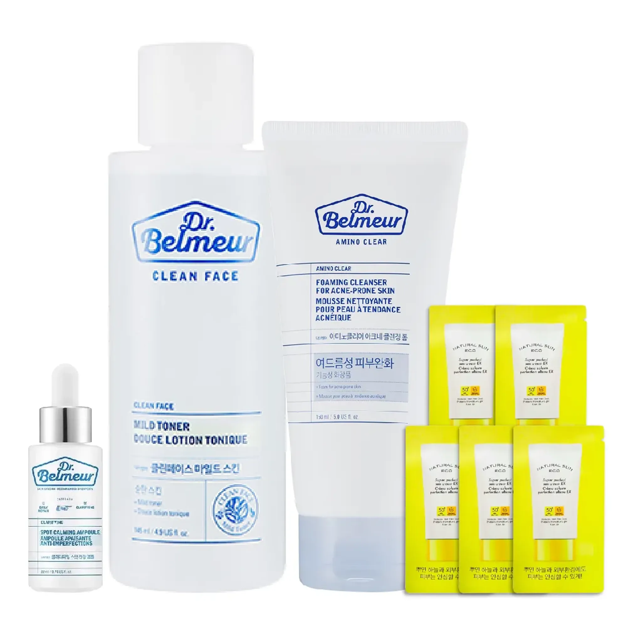 Set Dành Cho Da Mụn Dr.Belmeur (tinh chất, toner, sữa rửa mặt) & 5 Kem Chống Nắng 1.2ml