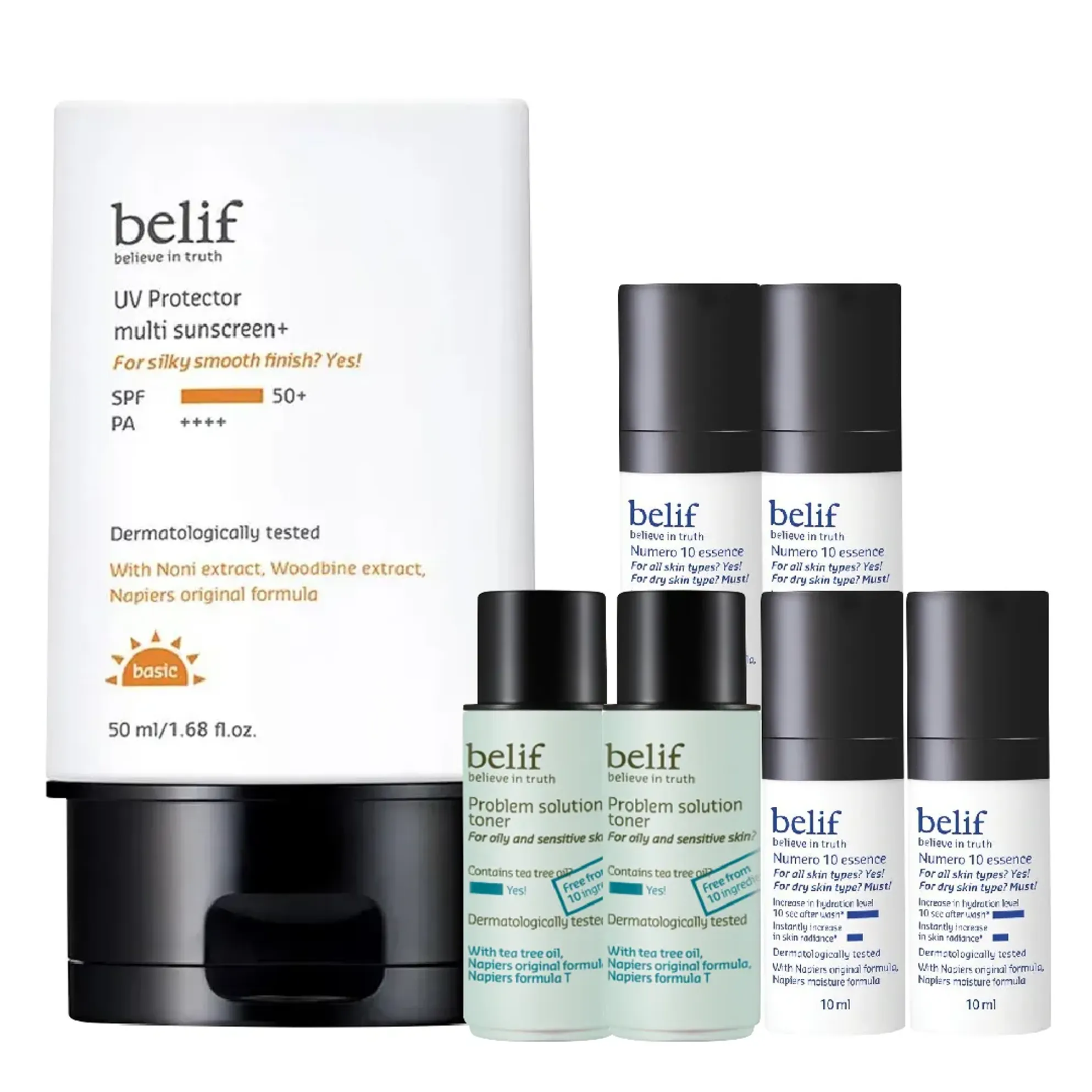 Set Khoá Ẩm Ngừa Mụn Belif (kem chống nắng 50ml, 2 toner 20ml & 4 tinh chất 10ml)