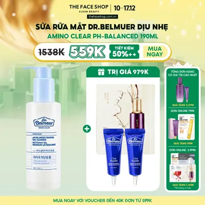 Rửa mặt thôi vẫn chưa thể loại bỏ hết bụi bẩn, tạp chất trên gương mặt sau một ngày dài. Sữa rửa mặt Dr.Belmeur Amino Clear Ph-Balanced Foaming Gel Cleanser sẽ là “công cụ” hỗ trợ cho bạn chăm sóc làn da hoàn hảo ngay từ những bước đầu tiên. Với kết cấu tạo bọt mịn màng, sản phẩm giúp loại bỏ bụi bẩn trên bề mặt và lấy đi hết tạp chất ẩn sâu bên trong lỗ chân lông một cách dễ dàng. Ngoài ra còn làm sáng vùng da bị xỉn màu, giảm thiểu kích ứng cho làn da nhạy cảm.