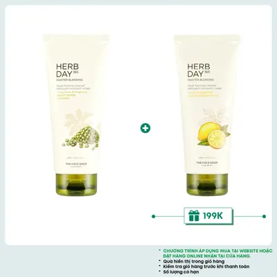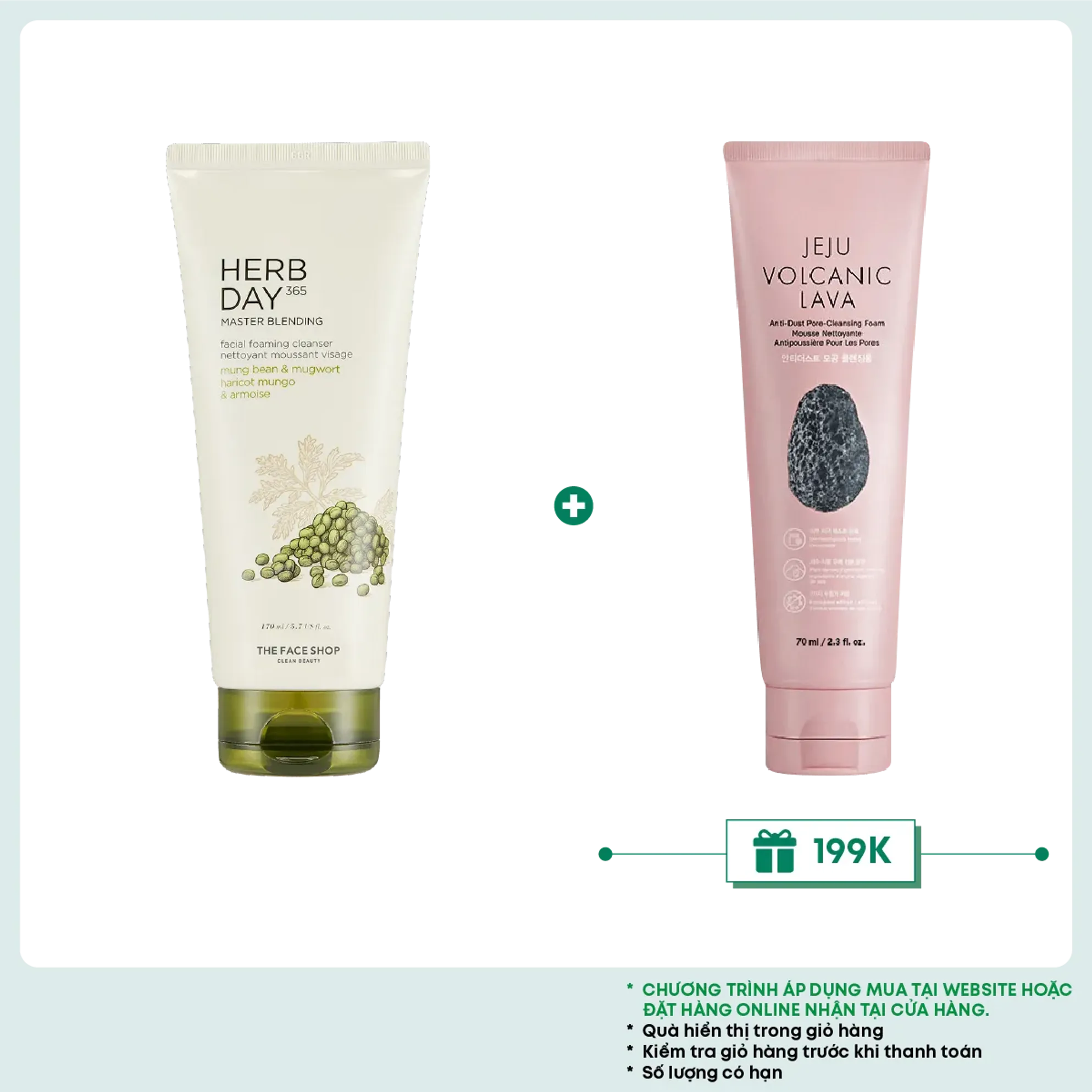 Sữa Rửa Mặt Tạo Bọt Dành Cho Da Dầu Mụn THE FACE SHOP Herb Day 365 Master Blending Facial Foaming Cleanser Mung Bean & Mugwort 170Ml