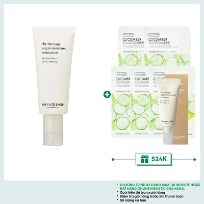 Dòng chống nắng: Kem chống nắng hóa họcThe Therapy Vegan Moisturizing Sun Serum được chứng nhận Cosmos Châu Âu với bảng thành phần sạch, an toàn, thân thiện với làn da. Chất kem mỏng nhẹ, tạo một lớp nền dưỡng vừa chống nắng, vừa cấp ẩm vượt trội, chăm sóc làn da hoàn hảo. Đặc biệt không để lại cảm giác nặng nề và mùi hương khó chịu khi apply lên da.
