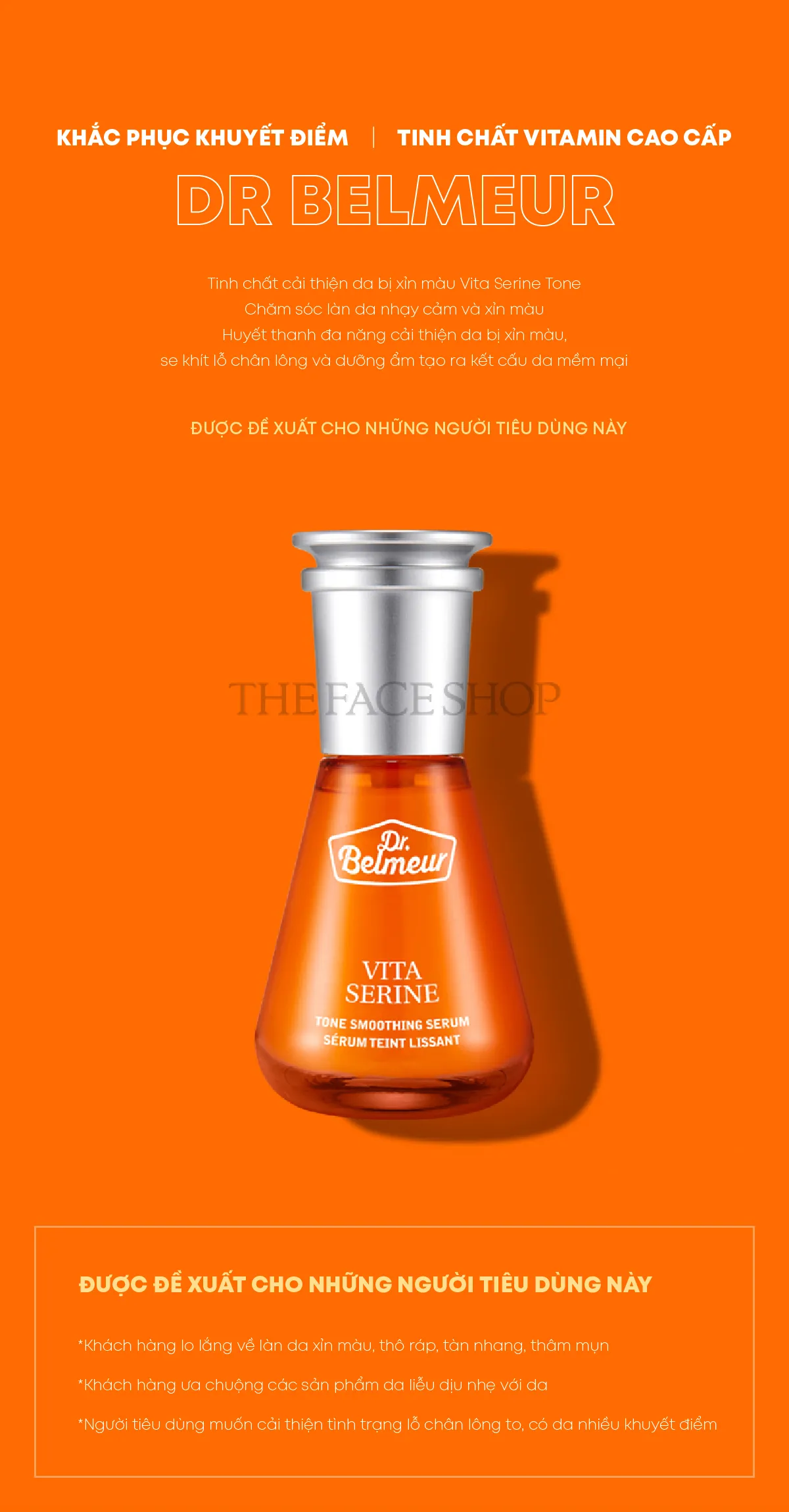 THEFACESHOP mang đến giúp bạn khắc phục da khô ráp và sạm màu chính là Dr.Belmeur Vita Serine Serum với 3 tác động: